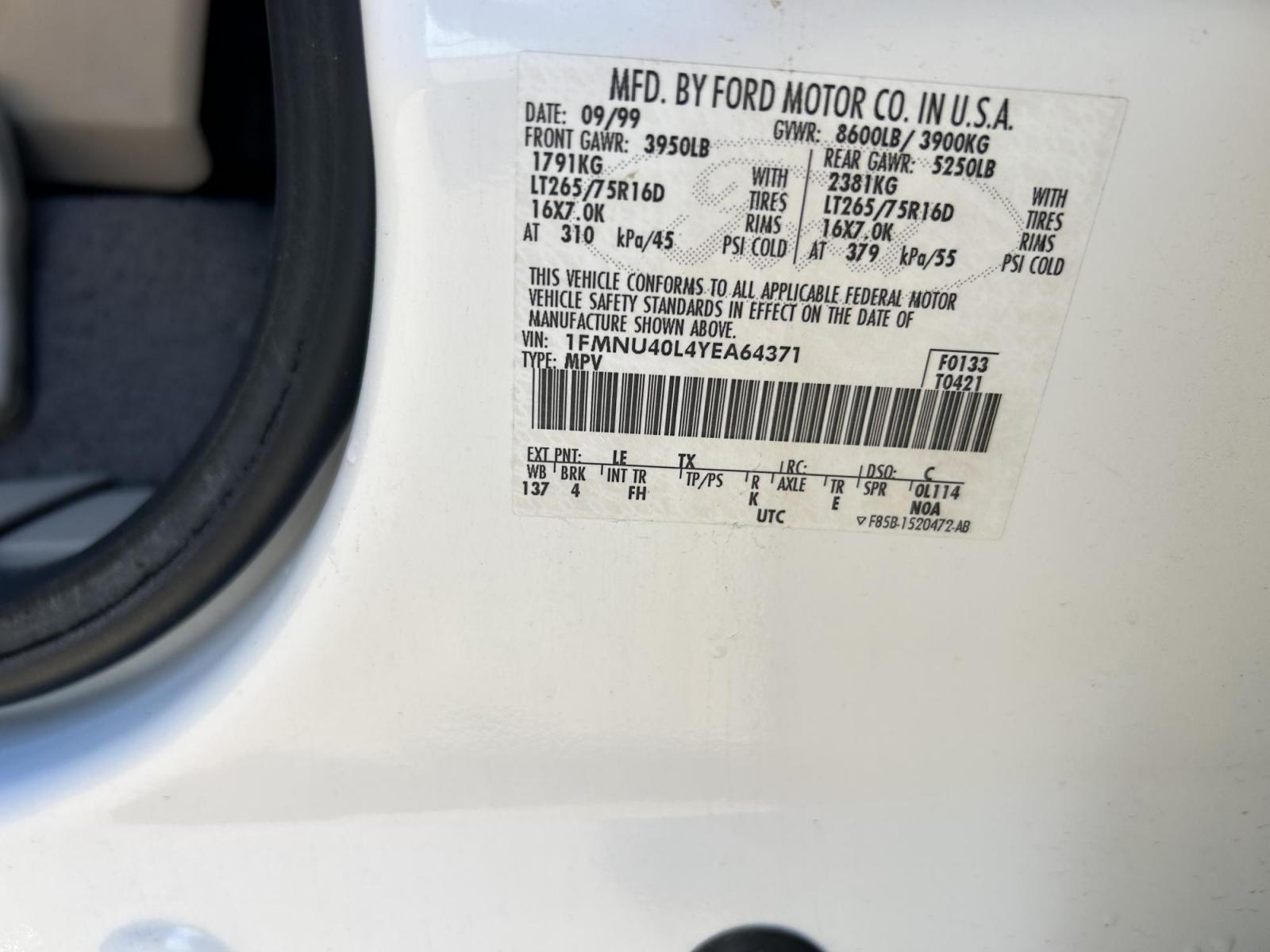 • VIN : 1FMNU40L4YEA64371