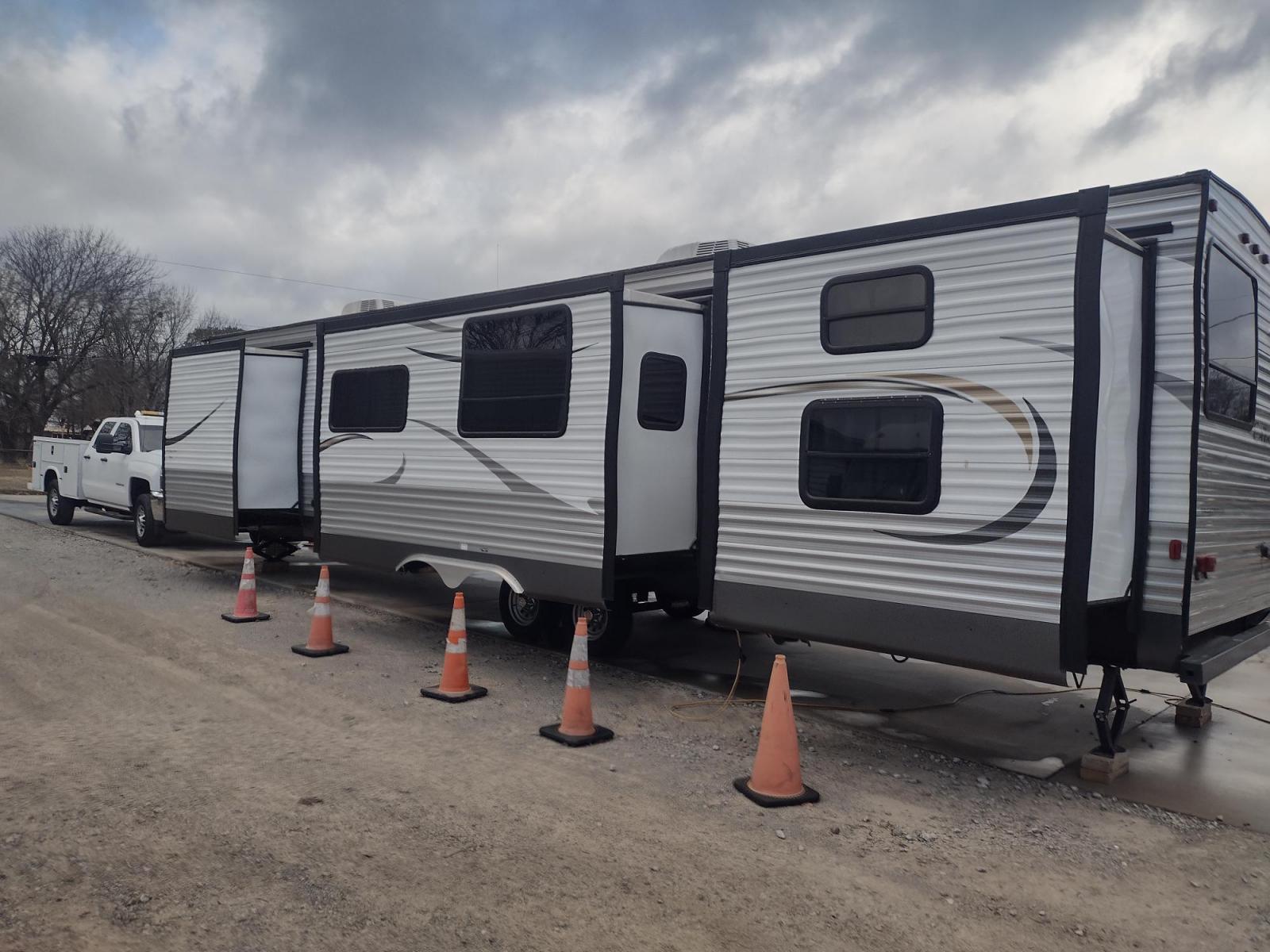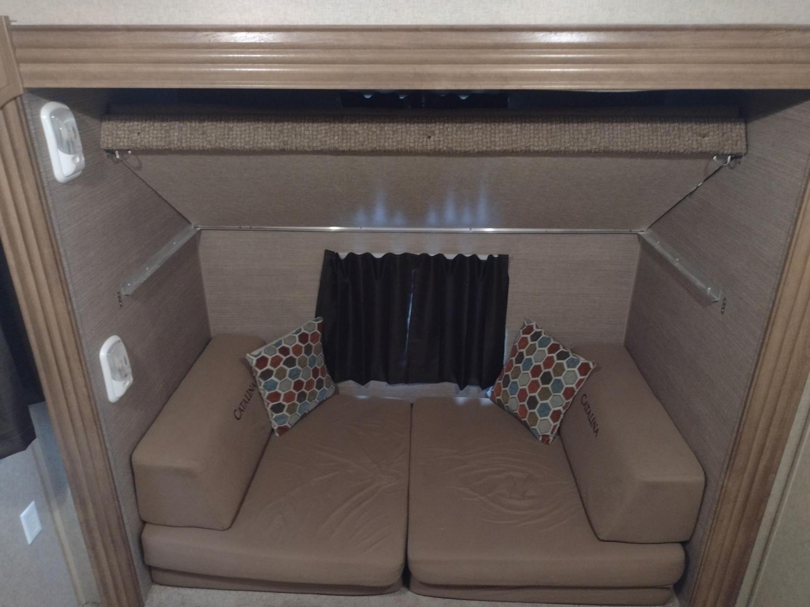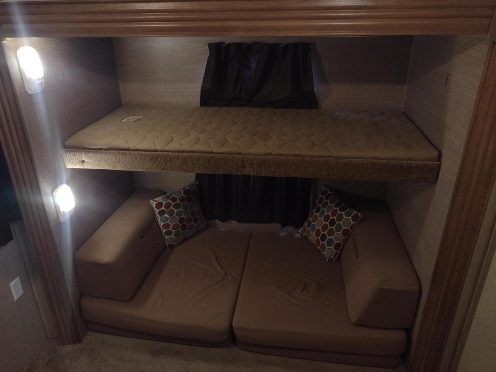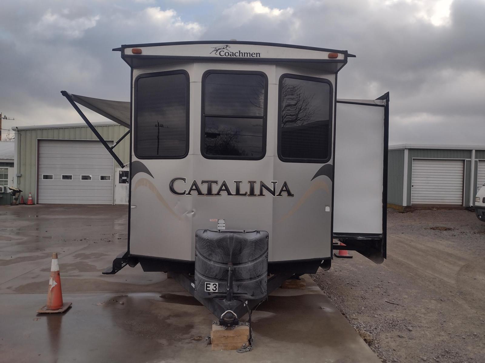 GET IT WHILE YOU CAN!!! 2014 FOREST RIVER CATALINA COACHMEN 39BHTS 41FT OVERALL WITH 21FT POWER AWNING.***REBUILT TITLE*** IN THE MASTER BEDROOM IS A QUEEN SIZE BED WITH STORAGE UNDER THE BED, OVERHEAD CABINETS, WARDROBE CABINETS, WARDROBE CLOSET, AND CEILING FAN. IN THE LIVING/KITCHEN AREA IS AN ENTERTAINMENT CENTER WITH TV MOUNT, AM/FM RADIO, COUCH WITH A PULLOUT FULL SIZE BED, OVERHEAD CABINETS, DINETTE TABLE WITH CHAIRS, CEILING FAN, DOUBLE SINK, OVERHEAD CABINETS, 3 BURNER STOVE WITH OVEN, OVERHEAD MICROWAVE, FULL SIZE FRIDGE, AND PANTRY. IN THE SPARE ROOM IS A LOFT BED WITH WARDROBE & TV CABINET, FLIP UP BUNK BED WITH SOFA BELOW THAT CAN TURN INTO ADDITIONAL SLEEPING, AND WARDROBE CLOSET. IN THE BATHROOM IS A STANDING SHOWER, VANITY SINK WITH MEDICINE CABINET, LINEN CABINET, AND WARDROBE CLOSET. OUTSIDE KITCHEN WITH SINGLE SINK, OVERHEAD CABINET, ELECTRIC 2 BURNER STOVE TOP, AND MINI FRIDGE. MAX SLEEP 10, MANUAL JACKS, 3 SLIDE OUTS, AND TIRES ST225/75R15.