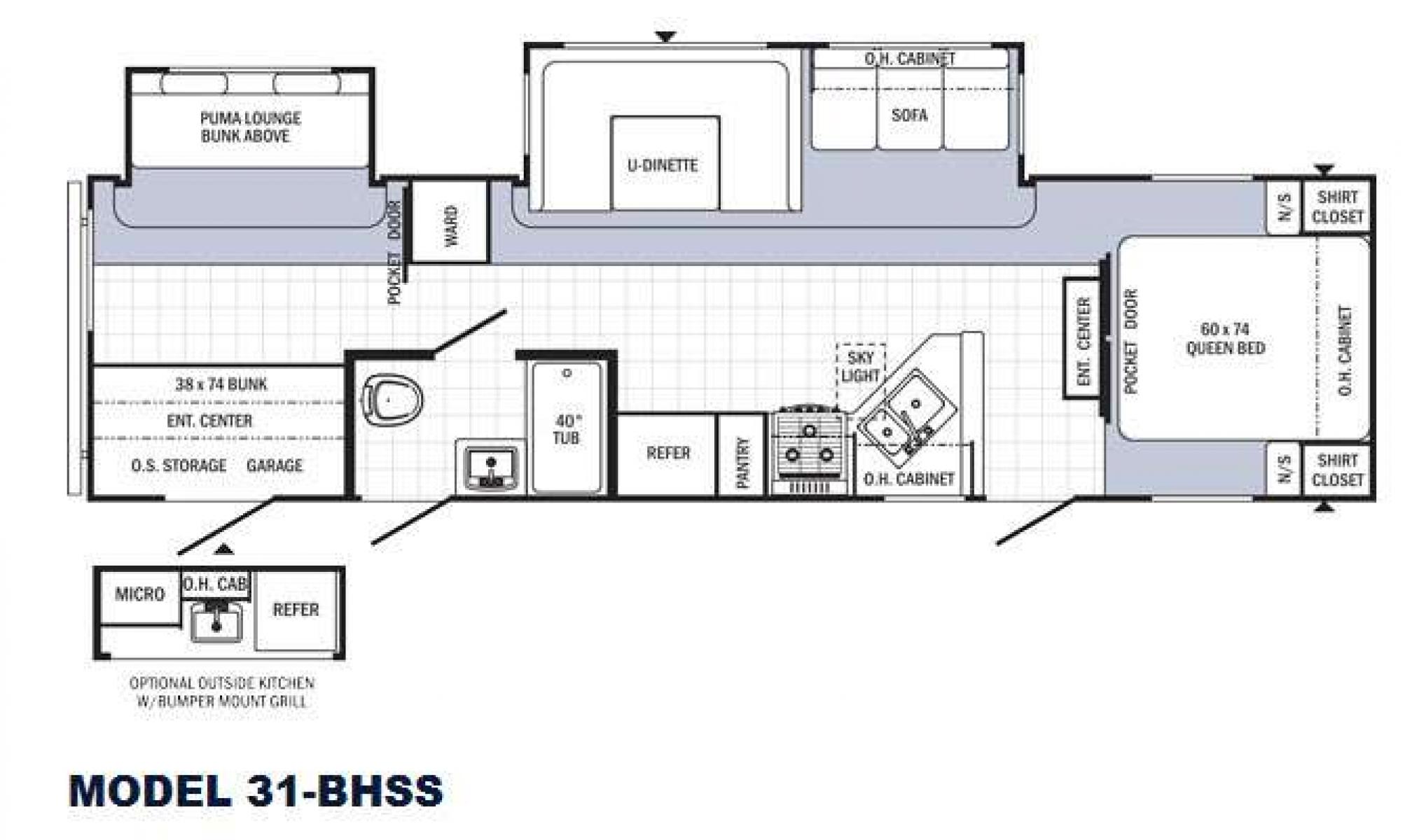 CAMPING SEASON IS RIGHT AROUND THE CORNER SO CHECK OUT THIS 2015 FOREST RIVER PUMA 31BHSS 34.5FT OVERALL WITH 15FT POWER AWNING. IN THE FRONT IS THE MASTER BEDROOM WITH A QUEEN SIZE BED, STORAGE UNDER THE BED, TWO WARDROBE CLOSETS, AND OVERHEAD CABINETS. IN THE LIVING AND KITCHEN AREA THERE IS A ENTERTAINMENT CENTER WITH SAMSUNG TV, COUCH THAT FOLDS DOWN FOR ADDITIONAL SLEEPING, OVERHEAD CABINETS, U-SHAPE DINETTE THAT FOLDS DOWN FOR ADDITIONAL SLEEPING, HAS STORAGE SPACE UNDER SEATS, DOUBLE SINK, OVERHEAD CABINETS, THREE PULLOUT DRAWERS, THREE BURNER STOVE WITH OVEN, OVERHEAD MICROWAVE, MID-SIZE FRIDGE, AND PANTRY. IN THE HALLWAY THERE IS A WARDROBE CLOSET WITH DRAWERS. IN THE BACK BEDROOM THERE IS A COUCH THAT FOLDS DOWN FOR ADDITIONAL SLEEPING, OVERHEAD TWIN BED, AND FULL SIZE BED WITH ENTERTAINMENT CENTER. IN THE BATHROOM THERE IS A VANITY SINK WITH MEDICINE CABINET AND SHOWER WITH BATHTUB. OUTSIDE KITCHEN HAS A MINI FRIDGE, PANTRY, SINGLE SINK, OVERHEAD CABINET, OVERHEAD MICROWAVE AND PROPANE GRILL.