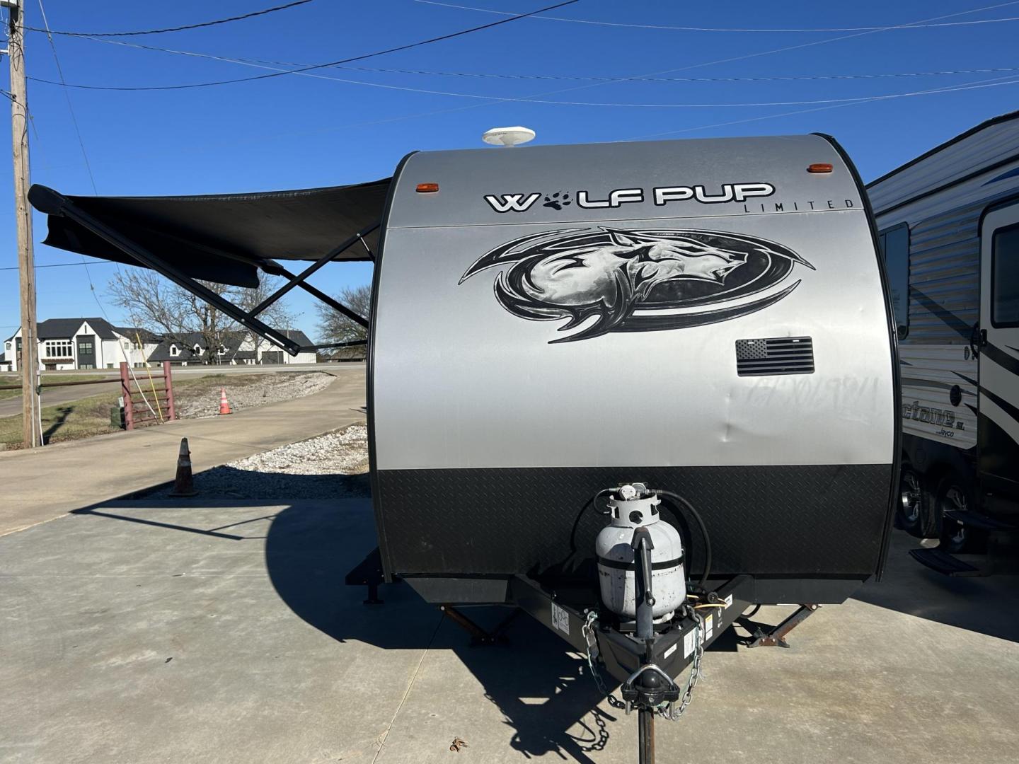 WE HAVE THE PREFECT GETAWAY CAMPER FOR YOU AND YOUR FAMILY. A 2019 FOREST RIVER WILDWOOD WOLFPUP OVERALL 22FT. IT FEATURES 10FT POWER AWNING, MANUAL JACKS, AMFM RADIO,OUTSIDE SHOWER, OUTSIDE STORAGEEMERGENCY DOOR. IN THE FRONT YOU HAVE A QUEEN SIZED BED WITH STORAGE UNDERNEATH, OVERHEAD STORAGE, IN THE MIDDLE YOU HAVE A BOOTH STYLE DINETTE THAT FOLDS DOWN FOR ADDITIONAL SLEEPING WITH STORAGE UNDERNEATH, STAINLESS STEEL SINK, 2 BURNER STOVE, OVERHEAD MICROWAVE, MID-SIZED FRIDGE, IN THE REAR YOUI HAVE TWIN BUNK BEDS, BATHROOM WITH STANDING SHOWER AND TOILET. ***BEDDING NOT INCLUDED*** DRY WEIGHT; 3291 GVWR;3930 PAYLOAD CAPACITY;639 HITCH WEIGHT; 430 ***CLEAN TITLE*** *** VERY MINIMAL HAIL DAMAGE AS SHOWN IN PHOTOS*** $9,900 CALL RUSS OR JONA 918-733-4887